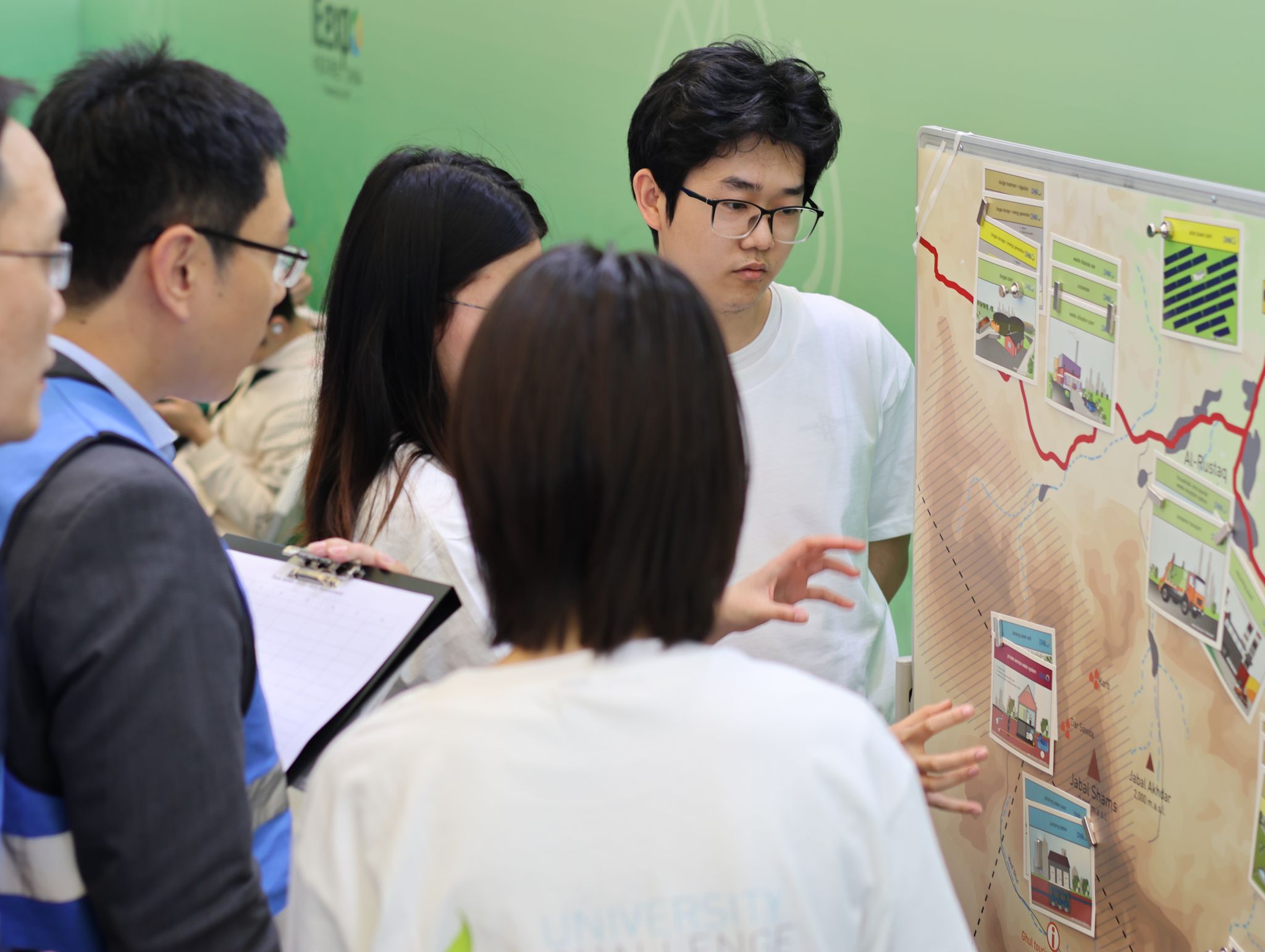 任务二则是通过模拟环境企业经营者或地方官员,根据任务清单在展区内搜集相关技术或企业信息,结合任务要求在规定时间内合作编写指定议题的调研报告。
