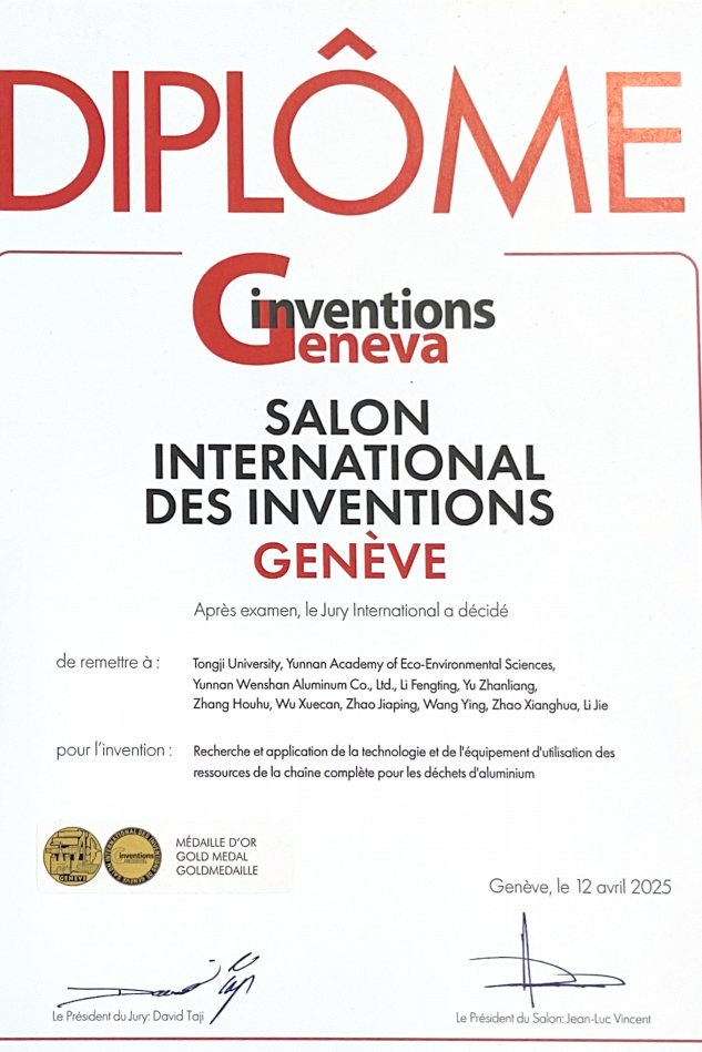 在第50届日内瓦国际发明展上,由我院李风亭教授团队牵头的参展项目“铝灰全链资源化利用技术与设备” 从全球千余项创新成果中脱颖而出,斩获金奖。这一技术突破标志着我国在铝工业固废资源化领域取得国际领先地位,为全球循环经济与绿色工业发展提供了中国方案。