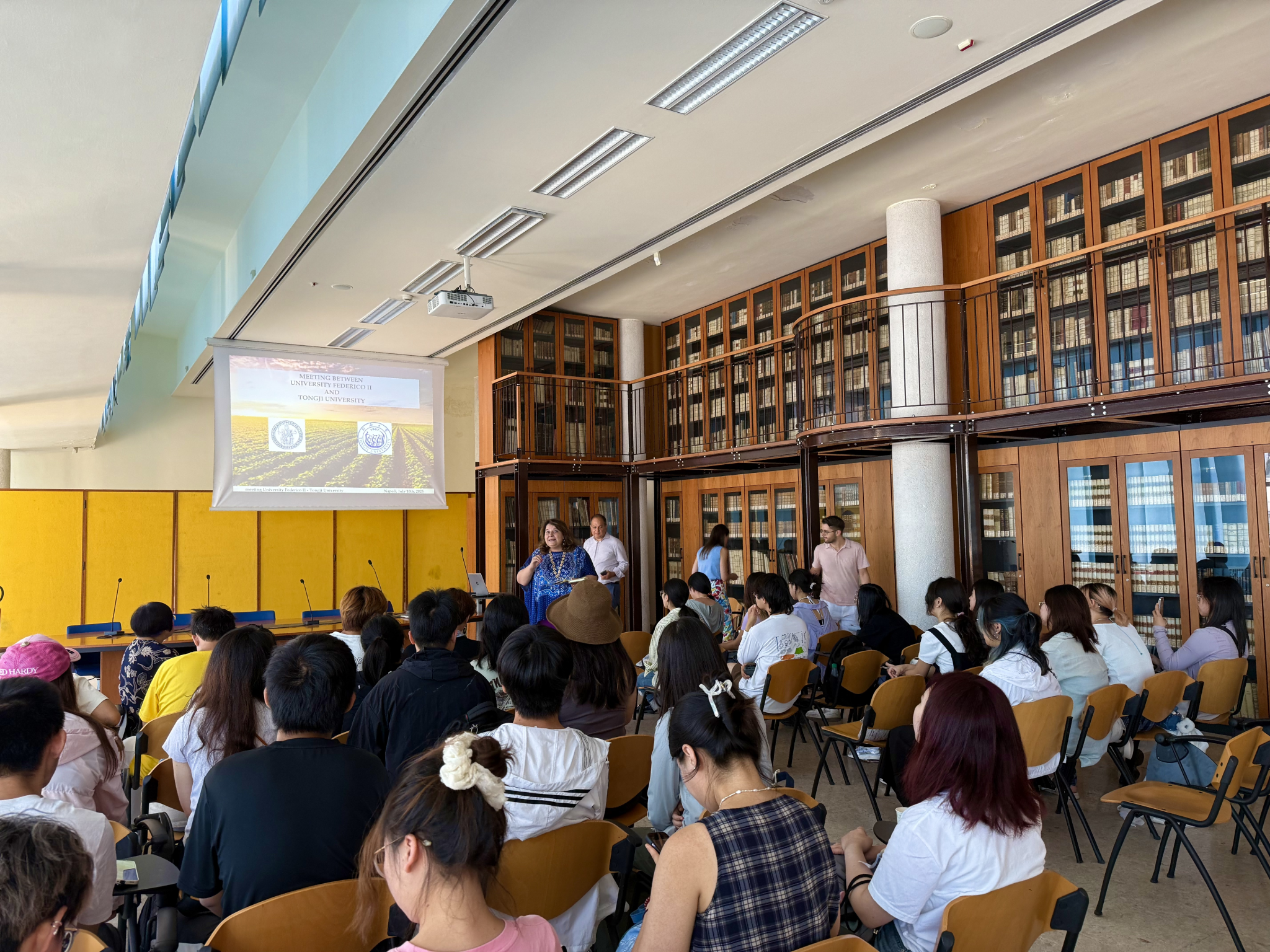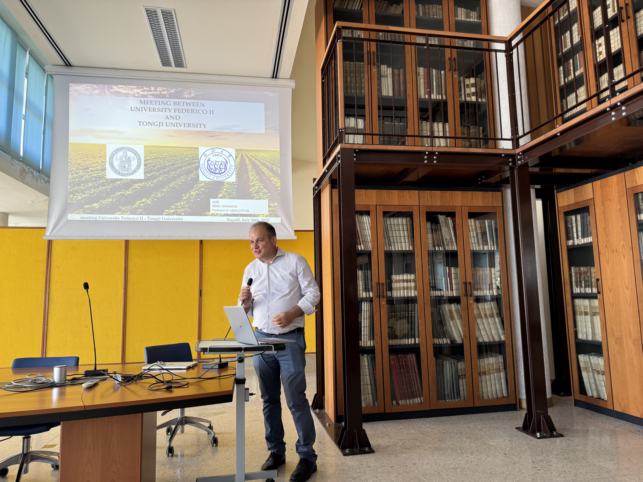 在历史悠久的意大利名校那不勒斯费德里科二世大学,暑期营师生与该校环境领域专家Guerriero Giulia、Domenico Pirozzi等教授开展了深入的学术交流。李咏梅教授介绍了同济大学以及环境学院的发展历程和学术成就,Domenico Pirozzi教授介绍了那不勒斯费德里科二世大学环境学科,讲解了意大利农业生态系统与可持续发展的未来路径,并以那不勒斯为例,深入剖析了火山环境对农业生产的深远影响,系统讲解了当地独特的土壤特性、气候条件与特色农作物生长之间的内在联系;也探讨了在保护生物多样性与农业文化遗产方面的策略与经验。师生们沉浸其中,结合中国农业现状与挑战,中意双方进行了热烈讨论。