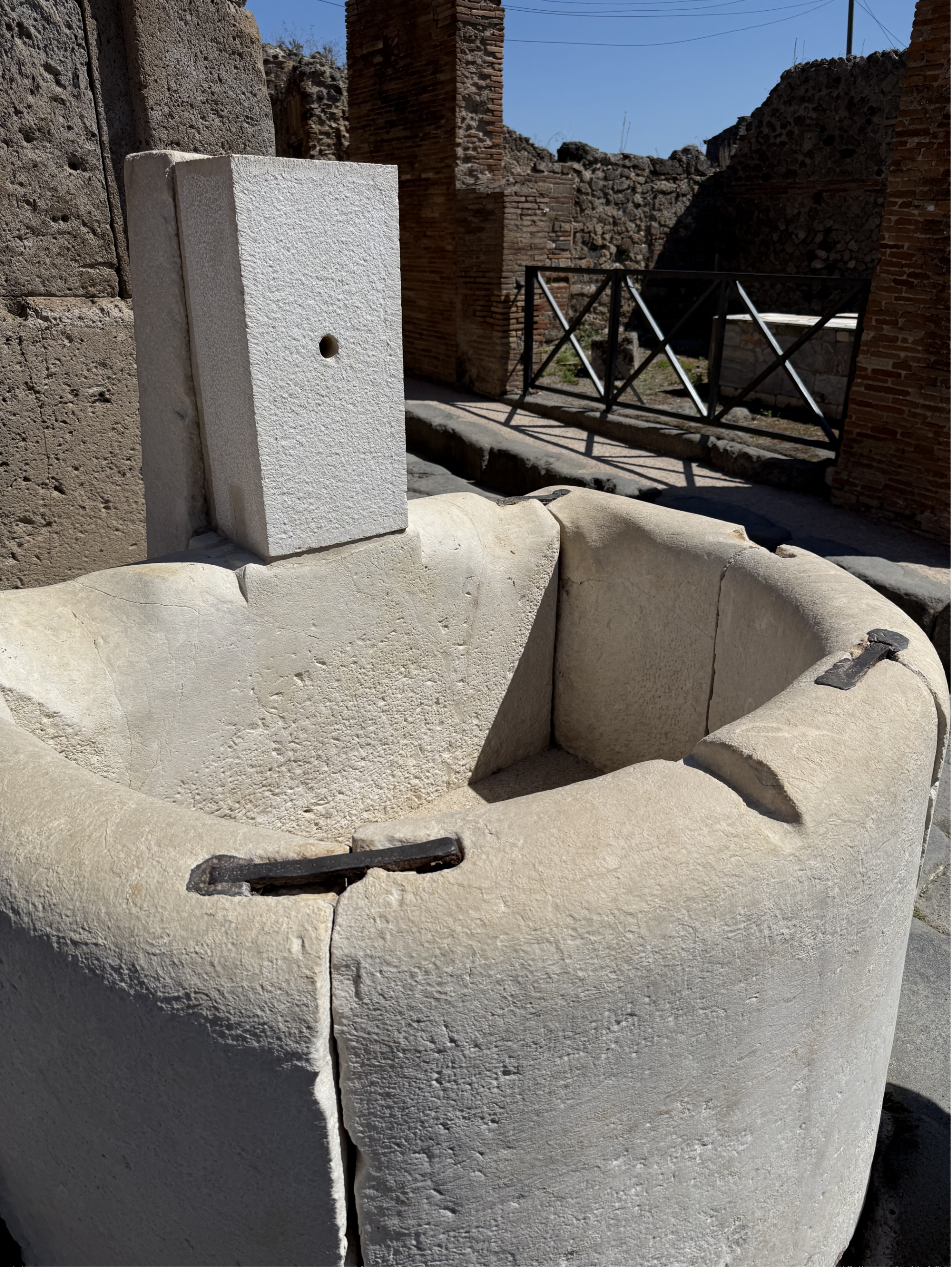 2023级 环境工程专业 郭骞:探访庞贝古城的水利遗迹让我真切惊叹于古罗马人的工程智慧。那些被火山灰封存的输水管道、公共浴场供水系统,既展现了他们对生活品质的追求,更彰显了对水资源循环利用的超前理念。作为环境工程专业的学生,我会以这些千年工程为镜,扎实学好现代环境治理技术,期待未来能在水资源保护与可持续利用领域贡献自己的力量。