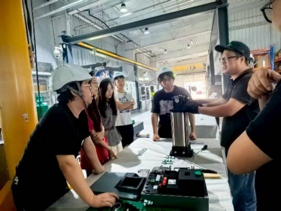 技术考察后,同学们以分组工作坊(Workshop)的形式开展了创新实践活动。同学们围绕家庭供水系统中的现实问题,合作提出创新解决方案并进行汇报。企业专家分别从研发与市场角度进行点评,帮助同学们完善方案、拓宽创新思路。在售后服务中心,威乐售后服务工程师乔飞老师为同学们讲解了泵类设备的维护维修流程,并指导大家动手实践,深化了对水泵结构与运行原理的理解。