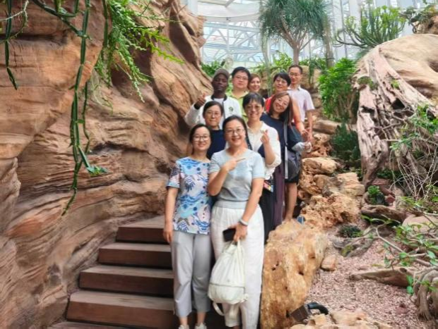 随后,众人步入温室花园,沉浸于丰富多样的植物群落与精巧的生态造景之中。从澄净映碧的海市沙洲,到生机盎然的云上森林,再到幽深沁人的云雾峡谷,老师们先后领略了热带干旱植物、热带雨林植物与热带花卉植物的独特风貌,共同感受植物在现代构建技艺下所绽放的全新魅力与艺术感染力。