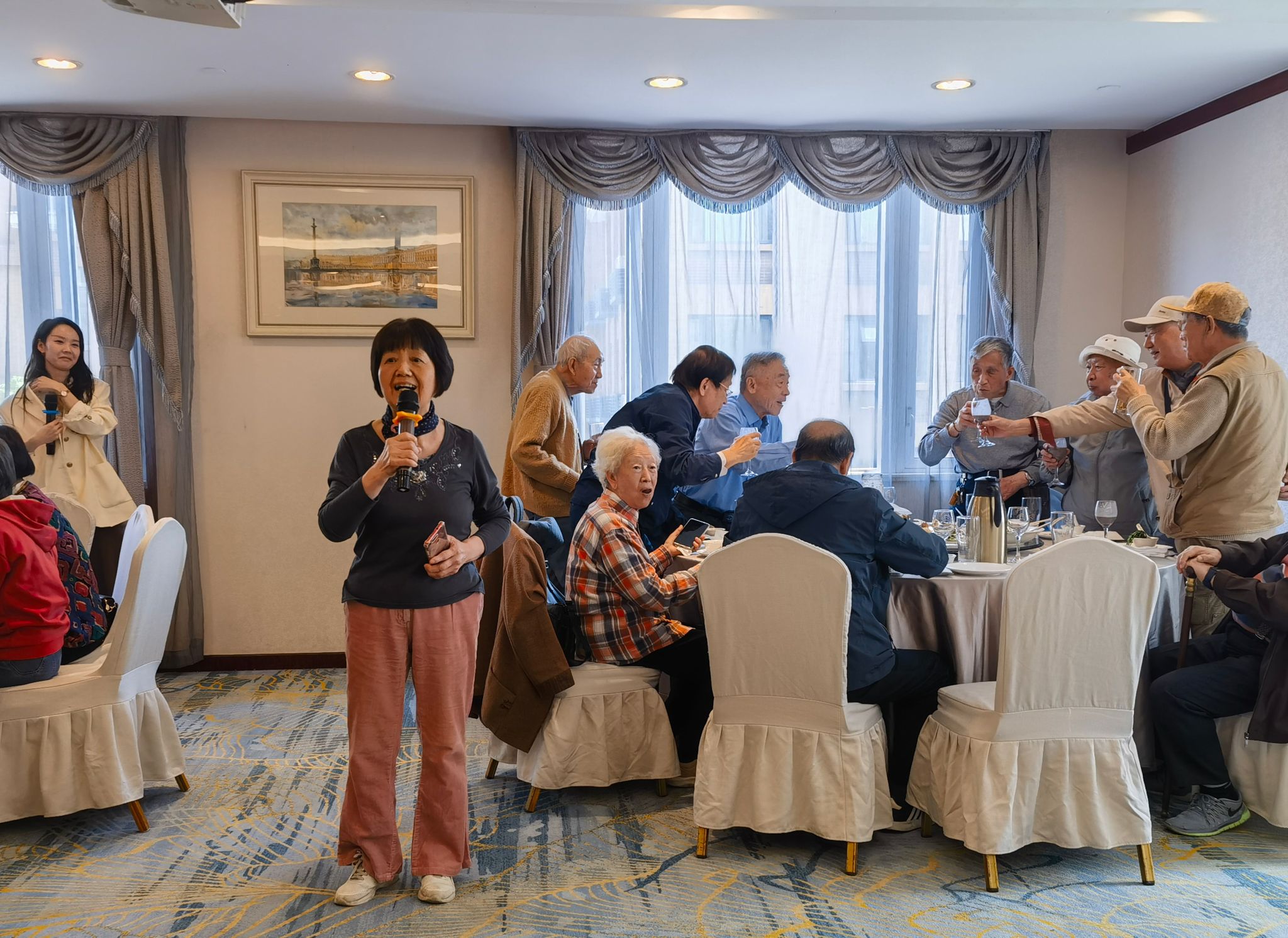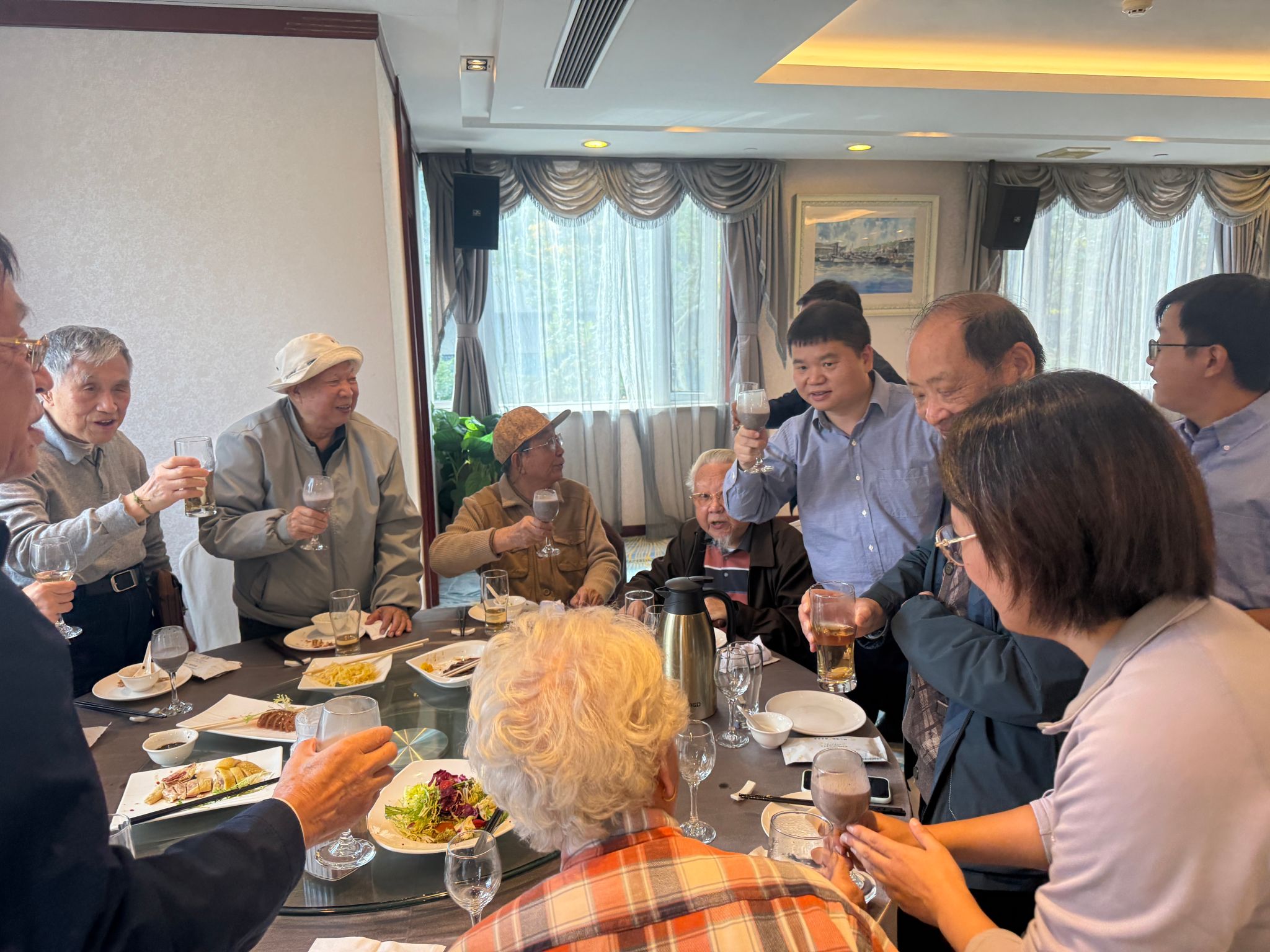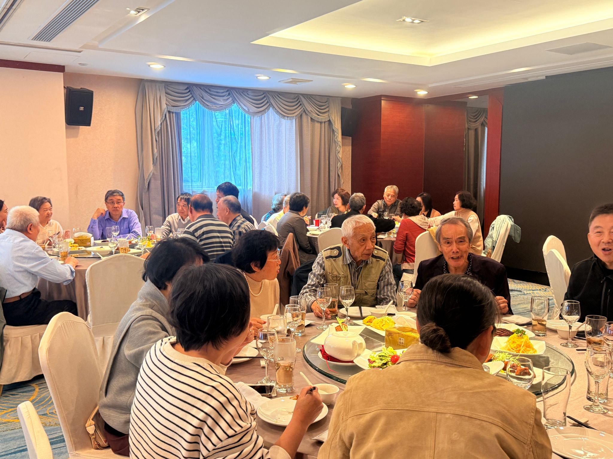 各位老教师们重逢老友、畅叙情谊,言谈间满是对往昔执教岁月的追忆,也对学院未来的发展充满了期待。席间,学院领导班子成员逐桌向各位老教师举杯致意,表达对他们的关心和感谢。两位退休老师现场唱起歌曲《夕阳红》,熟悉的旋律伴着真挚的唱腔,让现场充满了欢声笑语。