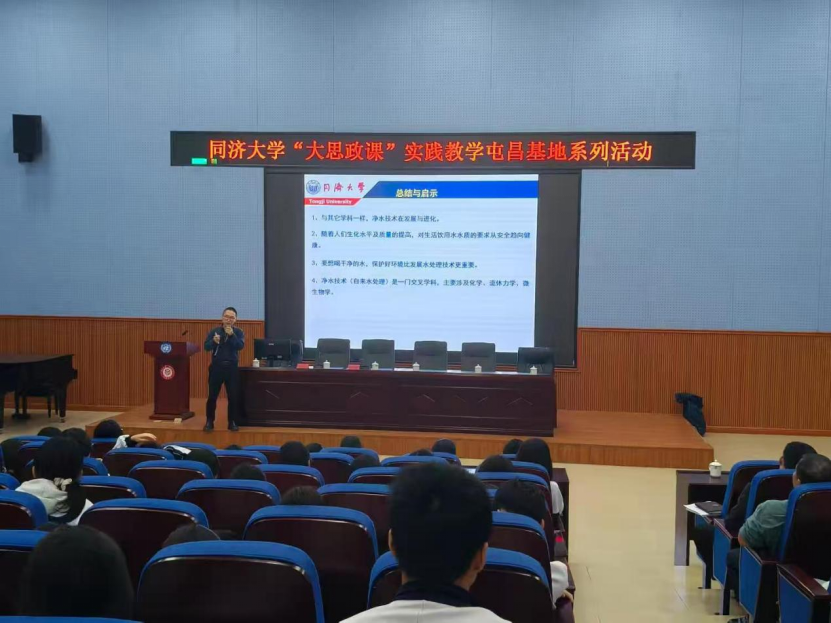 庞维海老师以《自来水的安全与利用》为主题,为学生们带来一场生动有趣的科普讲座。他从水的自然循环讲到现代净水技术,以专业视角激发学生对水资源保护的关注,引导他们树立环保意识与社会责任感。在互动环节中,学生们踊跃提问,庞老师耐心解答,现场气氛热烈,展现出同济大学在科学普及与价值引领方面的积极作为。