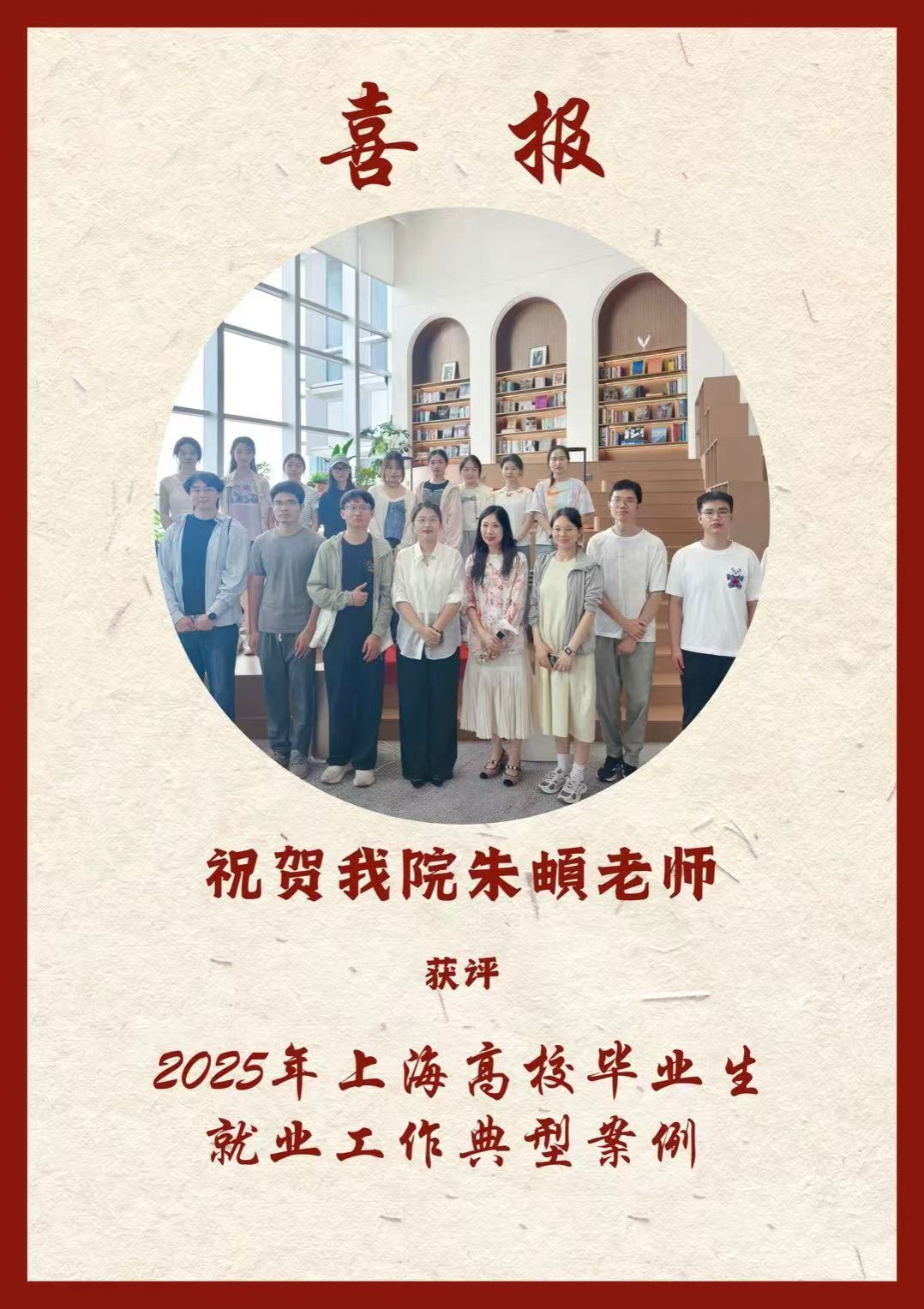 为深入贯彻落实《国务院办公厅关于进一步做好高校毕业生等青年就业创业工作的通知》及《教育部关于做好2025届全国普通高校毕业生就业创业工作的通知》要求,完善就业优先政策,健全高质量充分就业促进机制,做好宣传引导,持续开展就业典型案例和毕业生就业创业典型人物总结宣传,积极营造全社会关心支持高校毕业生就业的良好氛围,上海市教育委员会组织开展了高校毕业生就业工作典型案例推荐活动。根据《上海市教育委员会关于开展2025年上海高校毕业生就业工作典型案例推荐活动的通知》,经过校内个人(集体)申报、学院推荐、学校评审、学校推荐,我院朱頔老师的个人案例《整合资源、多维赋能,以生为本、精准护航》获评“2025年上海高校毕业生就业工作典型案例”。