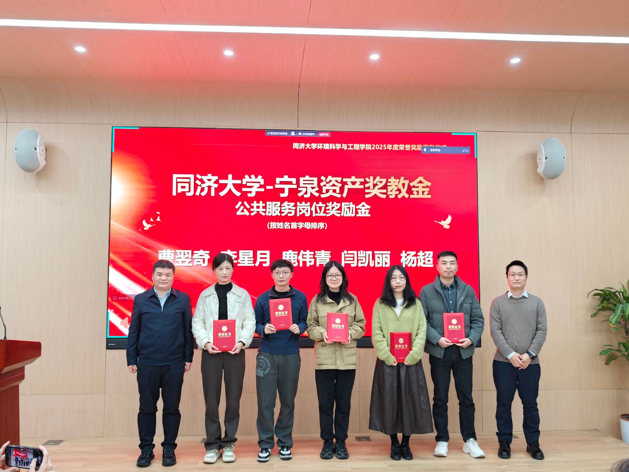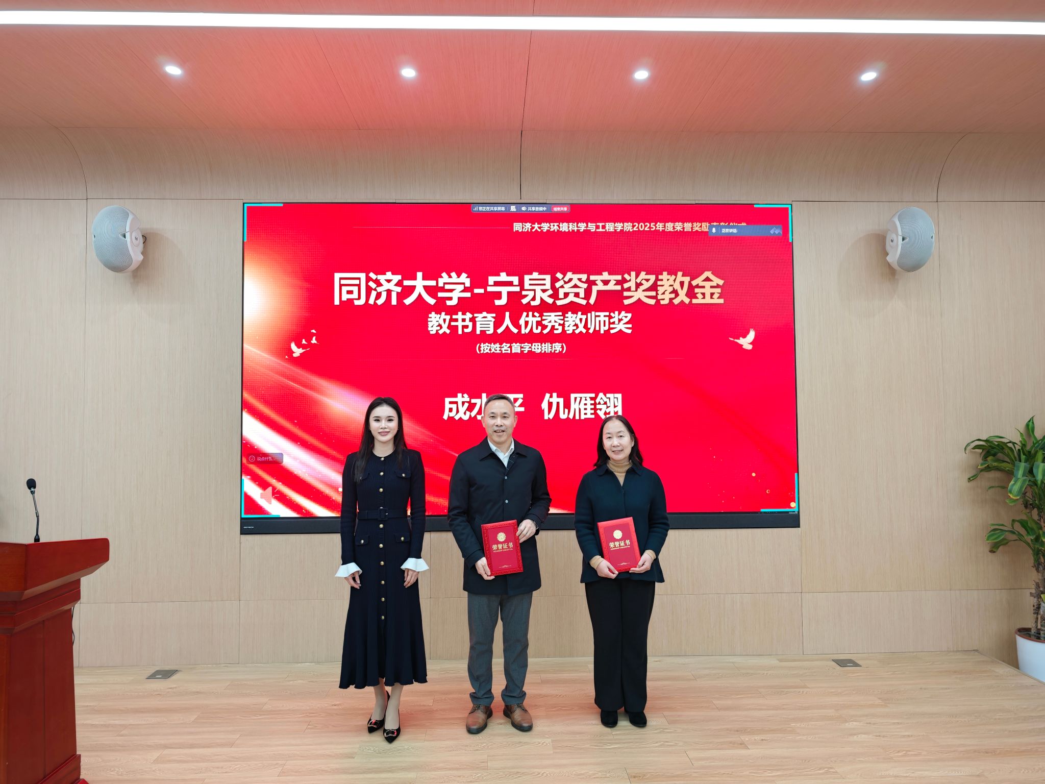 获奖教师凭借在教学、科研和公共服务等方面的卓越表现获得殊荣。捐赠企业代表与学院领导共同为获奖教师颁发荣誉证书并合影留念,现场气氛热烈、掌声不断。