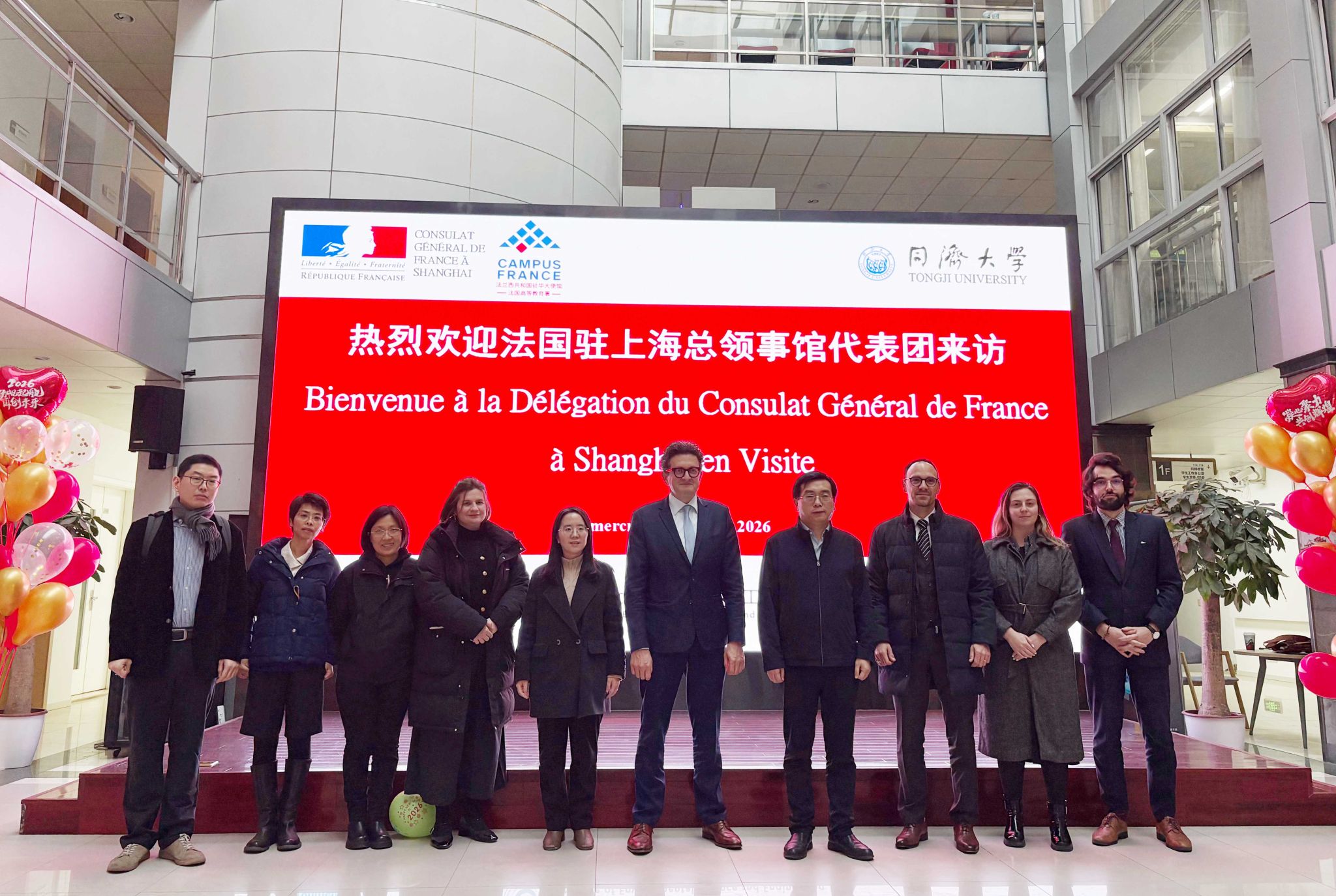 1月14日,法国驻上海总领事馆文化教育合作处教育领事戴杰明(Benjamin Demière)、科技领事马迪奇(Rachid Malti)一行来访我院,围绕深化中法在环境领域的合作开展交流。我院院长王志伟、副院长孙婧、李光明教授、吕凡教授、朱昊辰副教授以及学校外事办公室、中法工程和管理学院、联合国环境规划署—同济大学环境与可持续发展学院等单位代表共同出席相关活动。