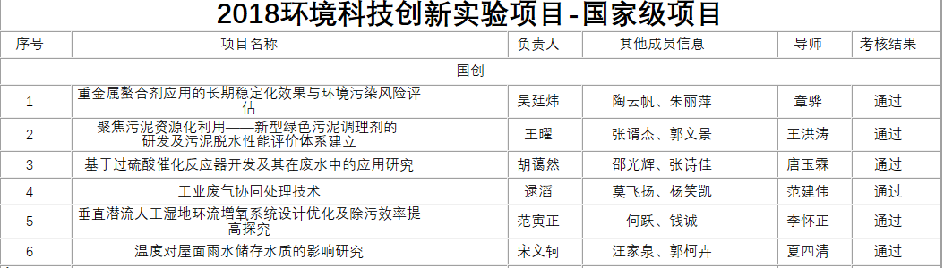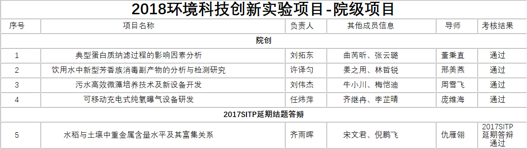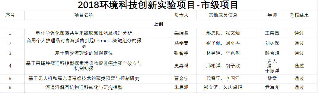 2018年立项的环境科技创新实验项目经过提交中期考核材料以及中期考核答辩,经过专家考核,现将通过中期考核结果公示如下。