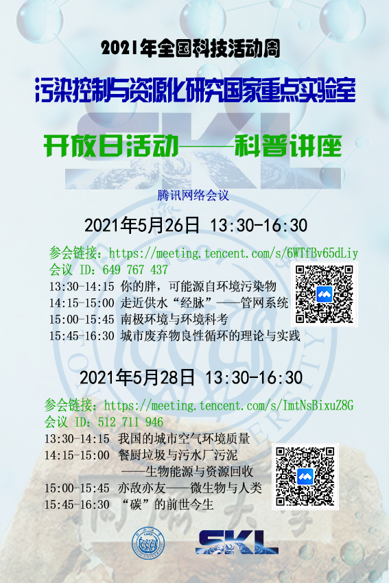 污染控制与资源化研究国家重点实验室作为国家级科研平台,将于2021年科技活动周举办对全体市民开放的科普活动。具体安排如下: