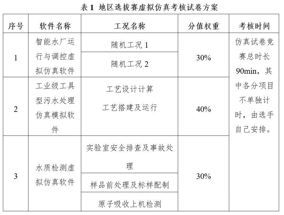 地区选拔赛虚拟仿真考核内容为智能水厂运行与调控虚拟仿真软件,污水处理工艺设计虚拟仿真软件和水质检测虚拟仿真软件三款软件。
