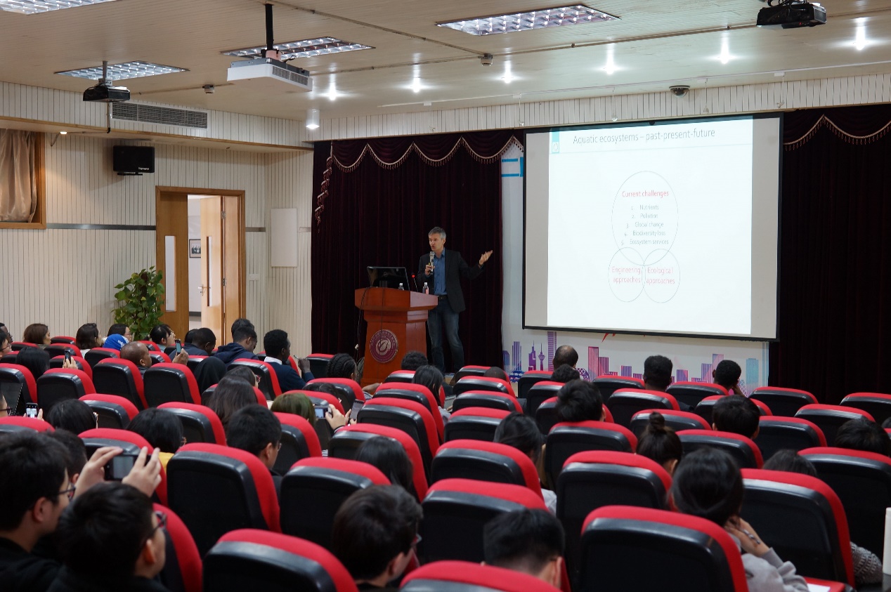 本次“扬子论坛”第一期的讲座嘉宾为Martin J. Kainz教授,他是奥地利伦茨水域生态研究中心(WasserCluster Lunz)的首席科学家之一,兼任维也纳大学教授,长期致力于水生生态相关研究,尤其在水生食物链/网的研究上颇有建树,担任国际湖沼学会副会长。本次讲座上,长江水环境教育部重点实验室主任尹大强教授对Kainz教授的到来表示热烈欢迎,学院党委副书记黄清辉副教授代表我院致欢迎辞,并介绍了“扬子论坛”的设立背景和目标,王锐副教授作为本次讲座召集人主持了会议并颁发了特邀报告人证书,全院逾140多名师生参与了论坛。