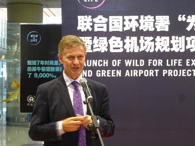 2016年9月9日,联合国环境规划署、北京首都国际机场股份有限公司、同济大学在首都机场3号航站楼共同启动“为生命呐喊”全球环保图片展中国站暨绿色机场规划项目启动仪式,联合国副秘书长兼联合国环境署执行主任埃里克·索尔海姆、联合国环境署全球亲善大使李冰冰、首都机场股份公司总经理韩志亮、同济大学常务副校长伍江、国家林业局野生动植物保护与自然保护区管理司副司长贾建生、联合国环境署驻华代表张世钢等出席本次活动。