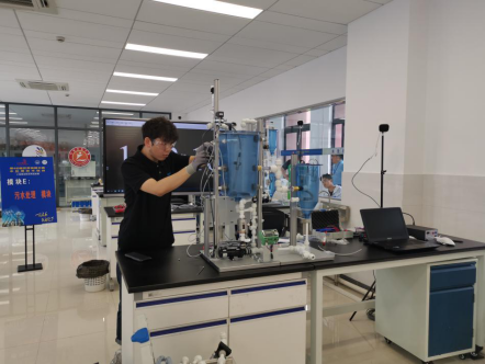 本次比赛共设置六大考核模块:混凝技术、水质分析技术、过程自动化控制高级版(Edukit PA)设备运行维护技术、膜处理技术、废水处理设备运行检修技术和实验报告撰写。焦同学介绍了参赛经历和感受。收到参赛通知的十个月以来,他首先在线上进行了为期两周的基础知识培训,返校后开始按照每周训练计划进行集中训练。在EdukitPA模块,由于专业知识并未涉及电气控制方面,在刚刚接触设备时要从了解电气机电方面的专业基础知识、熟悉设备的操控原理、结合水处理相关知识等多方面进行练习,之后在训练中不断发现问题、总结经验,提高比赛完成速度及质量。还有EDS膜处理与废水处理单元,是本次比赛最新接触的比赛模块,之前没有接触过,相对来说更为复杂,需要花费更多的时间去熟悉操作流程,满足高要求才能达到预期的效果。”比赛过程中尽量做到调整好竞技状态,尽最大可能发挥已有水平,临危不乱,抵抗干扰,及时应对处理突发状况。”焦同学对课题组同学传授了本次比赛获得佳绩的诀窍。