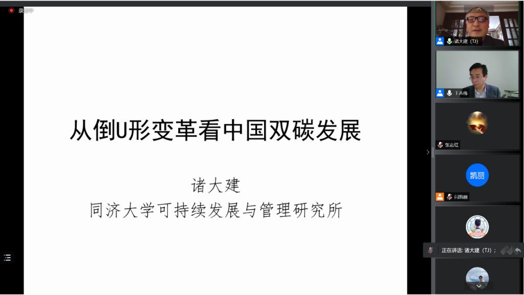 同济大学童小华副校长首先代表学校致辞,热烈欢迎来自全国各地的资深专家、学者线上出席首届上海“低碳发展、环境治理与健康”学科交叉高峰论坛,感谢各位院士、专家、学者对同济大学以及环境学科的长期关心和支持。在大会报告环节,中国工程院院士、上海大学副校长吴明红教授以《双碳背景下的功能材料体系构建及协同减污降碳》为题,着重从污染治理与节能降耗、温室碳捕获与新能源开发两个方面介绍了碳基功能材料的减污降碳应用,从战略层面指明先进环境功能材料的重要发展方向。中国工程院院士、同济大学原副校长蒋昌俊教授以《计算与低碳》为题,从科技革命与低碳发展、数字技术可赋能低碳、数字技术需追求低碳等方面,指出了数字技术未来发展新思路,指明了人工智能与交叉创新的发展方向。同济大学可持续发展与管理研究所所长诸大建教授以《从倒U形变革看中国双碳发展》为题,从双碳发展的基本概念和方法出发,解读了我国双碳发展不同阶段的内涵,并对我国未来双碳创新发展方向给出了解答。