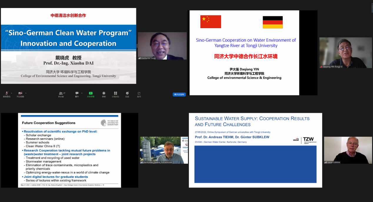 恩格尔哈特(Engelhart)教授对同济与达姆斯塔特工业大学合作的历史与未来预期发表了讲话。对未来合作提出了建议,如学生短期交换、在线学术讲座、暑期学校等,联合开展水和污水处理方面的科研项目如中水处理和回用、消除痕量污染物、微塑料和优控化学污染物、优化气候变化下的水-能关系等。萨博格鲁(Subklew)教授针对可持续供水-合作成果与未来挑战做了报告,回顾了2015-2022年中德合作供水项目一期和二期取得的成果,也提出未来面临的挑战,如气候变化对全球供水产生巨大的影响、供水与减少碳排放的策略、水质量问题、新型污染物引起的抗菌素耐药性、水温升高引起的病原体滋生等问题。