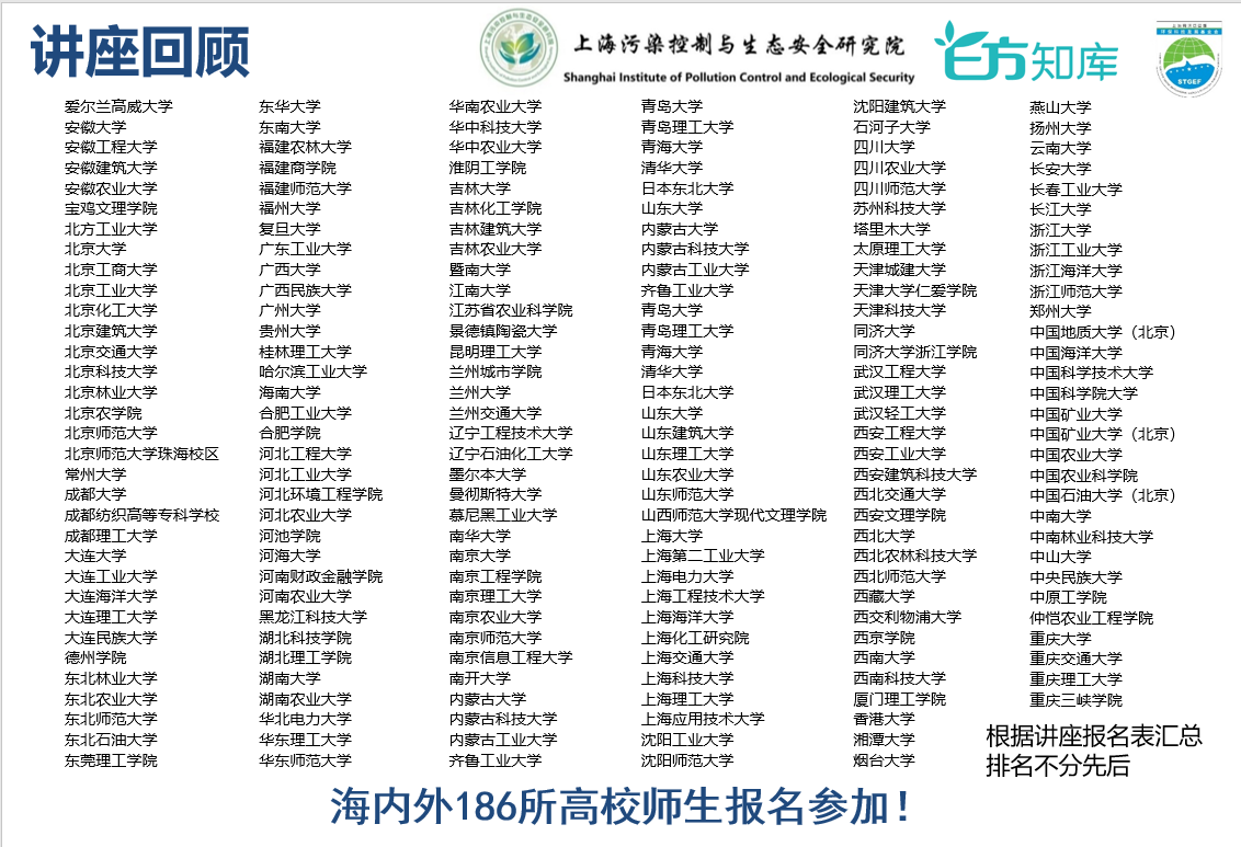 西安建筑科技大学陈松同学说:“通过讲座,我认识到了环境领域的前沿方向,也对研究生的科研方法有所了解,希望未来可以听取更多优秀的师长的学习经验,提升自我。建议开放课程公开性,增加我们获取回放的便利性,因为有时候赶不上直播真的很遗憾。祝愿讲堂越办越好!“
