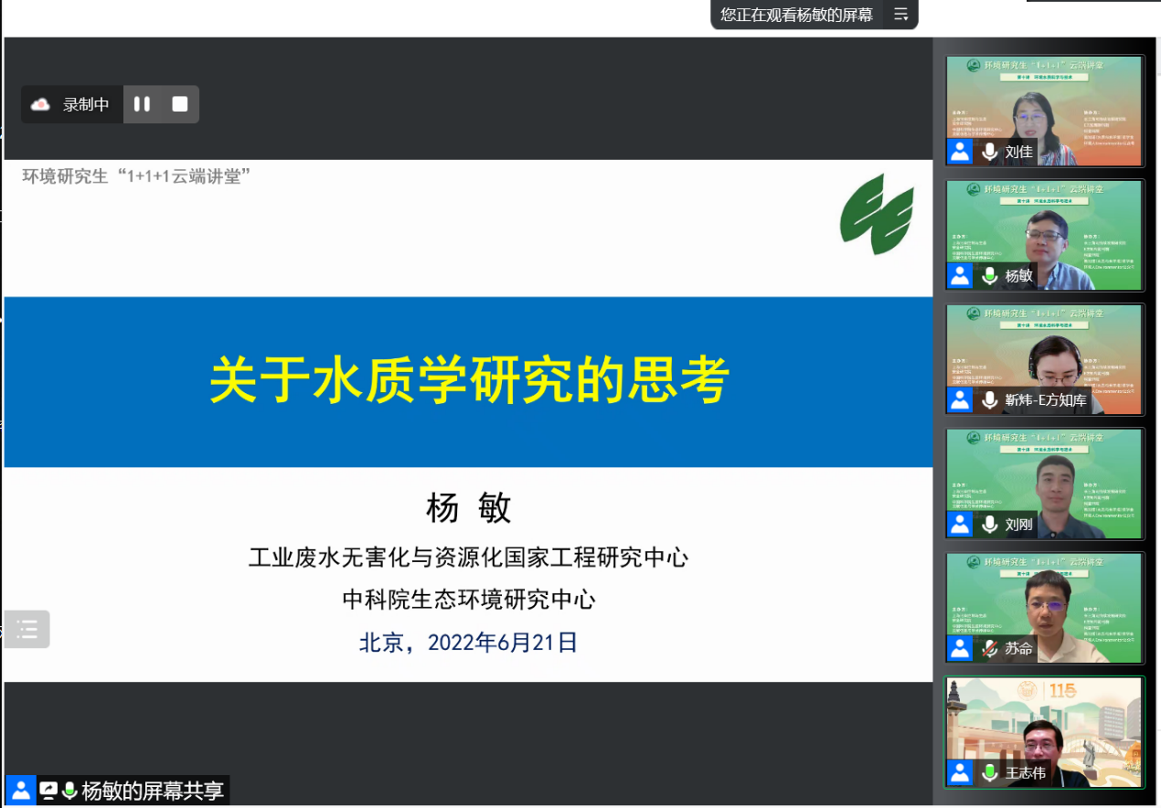6月21日,由我院牵头建设的上海市环境与生态高峰学科,联合中国科学院生态环境研究中心文献信息与学术传播中心和上海同济高廷耀环保科技发展基金会等单位,面向全国环境学科研究生举办了第一期全国环境研究生“1+1+1云端讲堂”课程第十讲暨结业仪式。