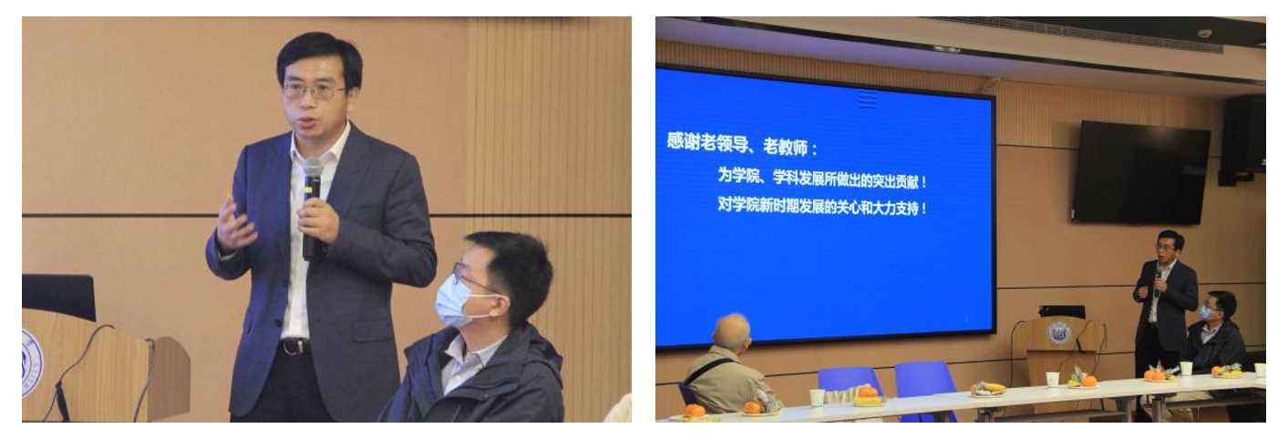 学院党委书记徐斌首先向在场的老领导、老同志表达了诚挚的问候与关心,衷心感谢各位老教师对学院发展作出的贡献和对青年一辈的栽培;之后徐斌向老教师介绍了学院新一届领导班子,他指出面对新时期的转型发展,挑战和机遇并存,希望各位老教师一如既往地关心和帮助学院,欢迎大家提出宝贵的意见和建议。