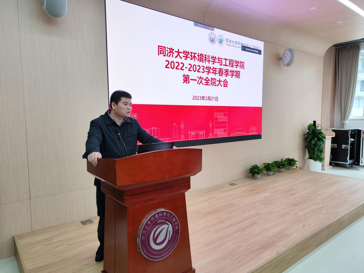 3月21日下午,环境科学与工程学院在明净楼121报告厅召开了2023年第一次全院教职工政治理论学习大会暨新学期工作部署会议。学院党政领导班子和全体教职工以线上和线下方式参加,党委书记徐斌主持会议并讲话,院长王志伟部署学院新学期工作。