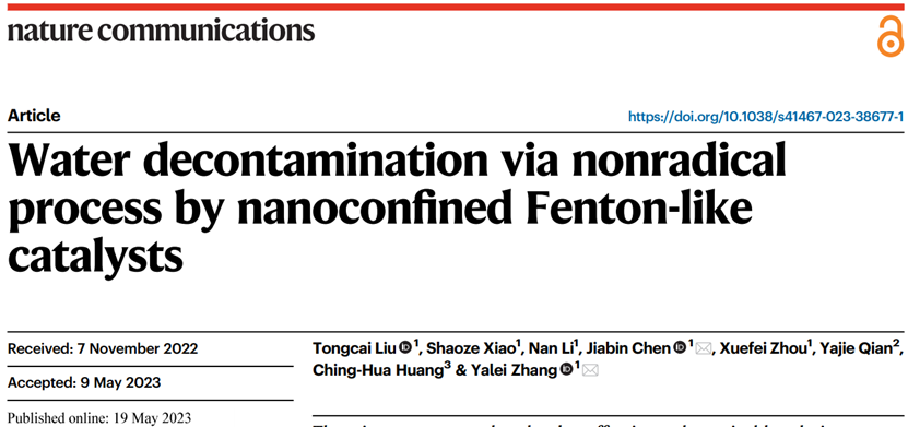 近日,我院张亚雷教授团队在国际权威期刊《Nature Communications》发表了题为:“Water decontamination via nonradical process by nanoconfined Fenton-like catalysts”的研究论文(Nature Communications, 2023, 14:2881)。论文提出了非均相类芬顿氧化技术中自由基向非自由基调控的新策略。制备了一种钴元素介导的碳纳米管催化材料,通过纳米尺度的限域效应精准调控局域反应环境,优化有机污染物氧化降解路径;揭示了污染物的非自由基降解机制,实现了宽pH范围下有机污染物的高效选择性降解,为进一步推动选择性氧化水处理技术的应用提供了技术支撑。