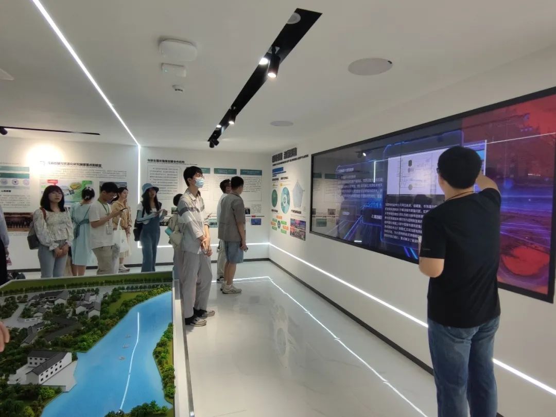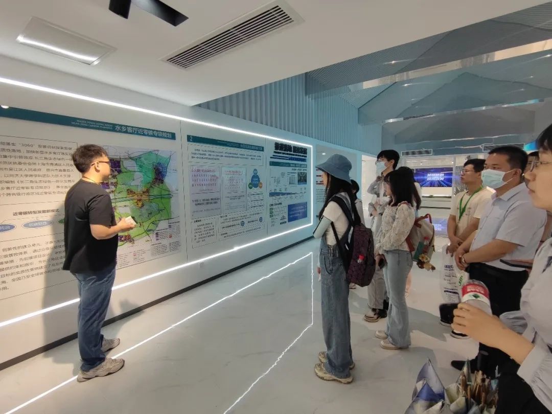 同济大学长三角可持续发展研究院坐落于美丽的上海市青浦区,是长三角生态绿色一体化发展示范区的重要平台,目前已经成为了绿色低碳前沿原创技术和产业化成果的孵化基地。抵达研究院后,同学们跟随长三角可持续发展研究院管理员翁闻畅老师的讲解,先后参观了长三角可持续发展研究院展馆,宝业集团建筑碳中和展馆,学习了在长三角一体化以及碳中和碳达峰国家战略背景下聚焦可持续发展领域的七大研究方向,包括气候变化与全球生态、资源循环与清洁能源和低碳城市与绿色建造等;了解了水乡客厅近零碳专项规划,并亲身体验到了许多可持续发展方向的前沿技术成果,如低碳节能品质建筑、绿色人本的智慧交通、循环韧性的生态环境,高效共享的综合能源站等。