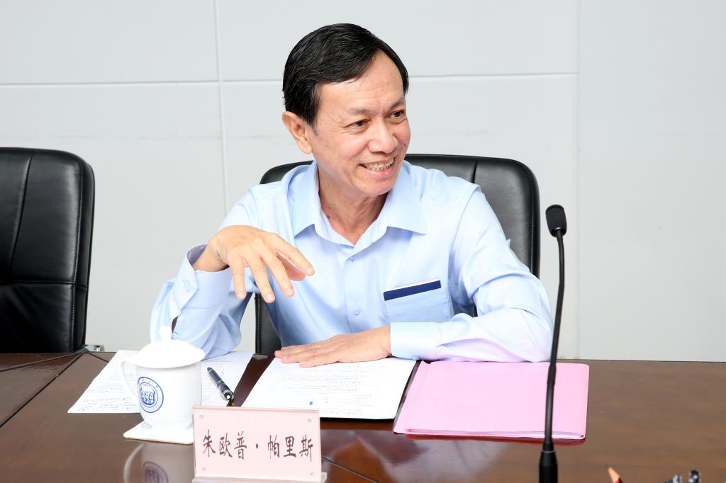 同济大学副校长娄永琪会见柬方,出席会议的还有同济大学外事办公室副主任、留学生办公室主任陈毅立、同济大学环境科学与工程学院党委书记徐斌、同济大学环境科学与工程学院副院长陆志波、同济大学环境规划与管理研究所副所长郭茹等。