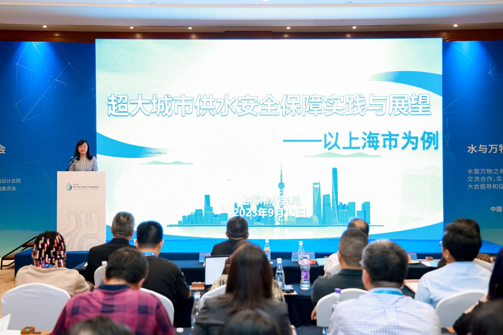 9月13日, 由水利部长三角城镇供水节水及水环境治理重点实验室参与承办的第18届世界水资源大会边会——区域一体化背景下城市群水资源供给与需求管理边会顺利召开。同济大学徐斌教授作为主持人对大会作系列介绍。会议邀请了7位国内外顶级院士专家,就城市群水资源安全供给、水资源智慧管理等方面的研究成果、实践经验及典型案例进行了交流和分享。