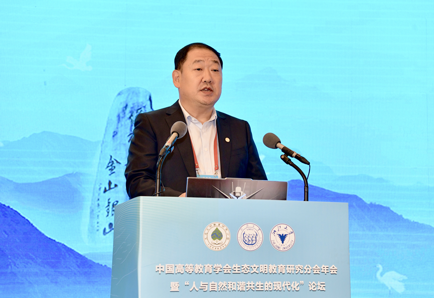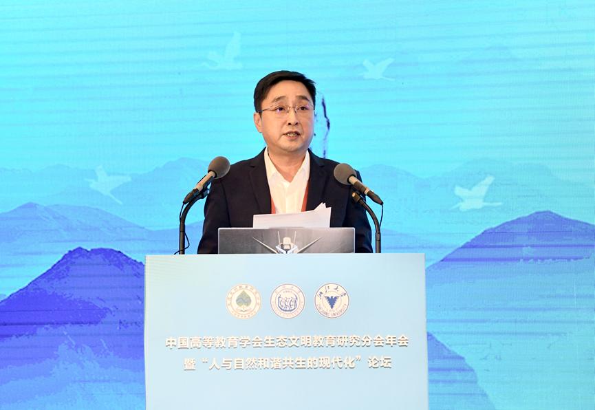姜恩来代表中国高等教育学会对本次学术年会召开表示热烈祝贺。在讲话中,他着重强调了生态文明教育在促进绿色低碳转型、美丽中国建设中的重要作用,并对生态文明教育研究分会提出四点希望:一要强化党建引领,服务国家战略;二要强化理论研究,做好资政建言;三要强化内部建设,提高工作质量;四要强化交流合作,扩大国际影响。并倡议与会专家学者要共同推动生态文明教育改革与发展,为建设人与自然和谐共生的美丽中国作出新的更大贡献。