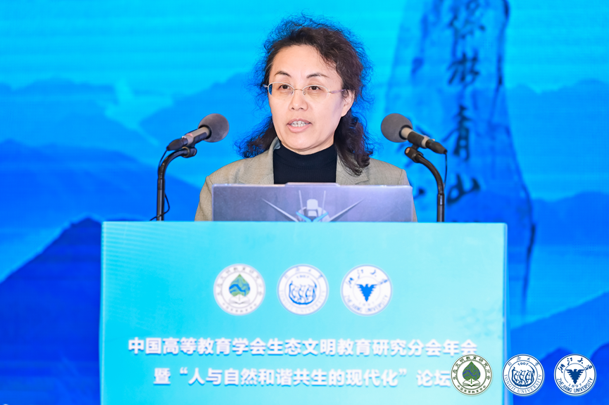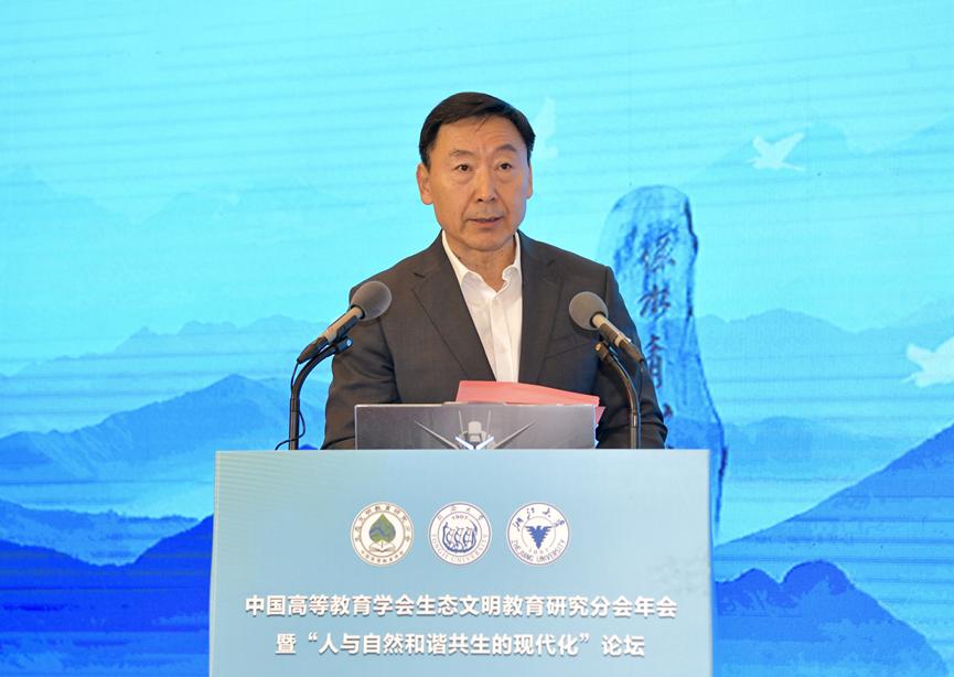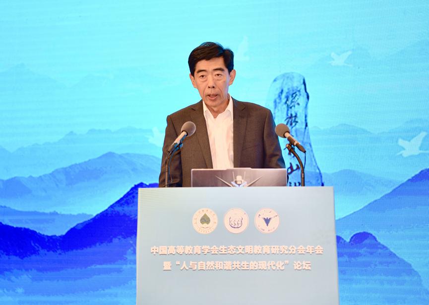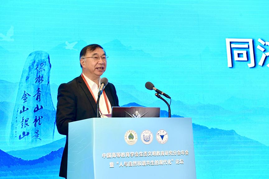 贺克斌院士在致辞中介绍了生态文明教育研究分会自2019年成立以来,围绕生态文明建设与区域创新发展、碳达峰碳中和与生态文明建设等开展的专题学术研讨及生态文明教育研究,已产生了广泛的社会影响力。他总结回顾了分会2023年取得的成绩,包括组织院士、专家围绕双碳行动与绿色高质量发展等开展科普宣传、推动生态文明教育的教学改革研究、打造生态文明建设与环境保护“云端”教学新范式等,并指出分会将充分吸纳本次大会报告中各位院士、专家的真知灼见,深入探索促进“人与自然和谐共生现代化”而需解决的理论和实践问题,推动生态文明教育更好服务中国式现代化建设。