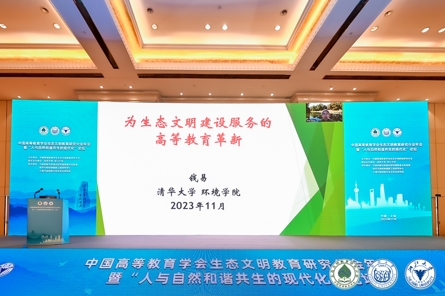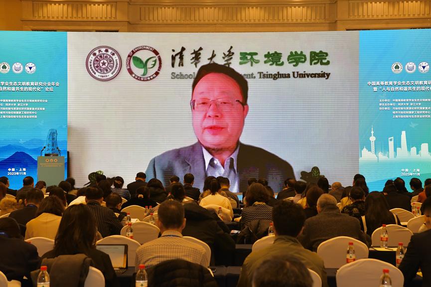 11月18-19日,中国高等教育学会生态文明教育研究分会2023年年会暨“人与自然和谐共生的现代化”论坛在上海召开。中国高等教育学会副会长、秘书长姜恩来,中国工程院院士、中国高等教育学会生态文明教育研究分会理事长贺克斌,中国工程院院士、同济大学教授段宁、徐祖信,同济大学副校长石振明,浙江大学党委副书记黄翔峰,国家发展和改革委员会资源节约与环境保护司原司长任树本,习近平生态文明思想研究中心副主任田春秀研究员等出席开幕式。中国高等教育学会生态文明教育研究分会秘书长、清华大学温宗国主持开幕式。