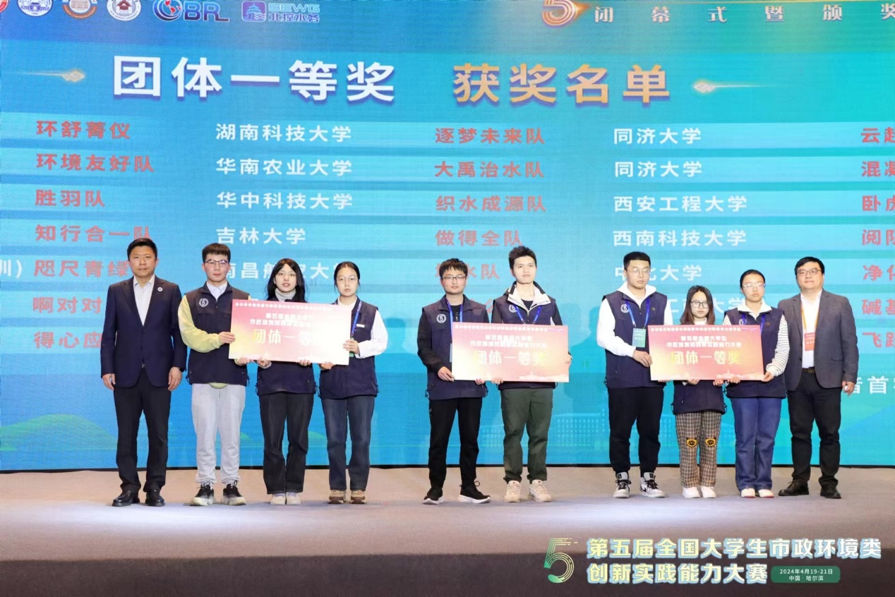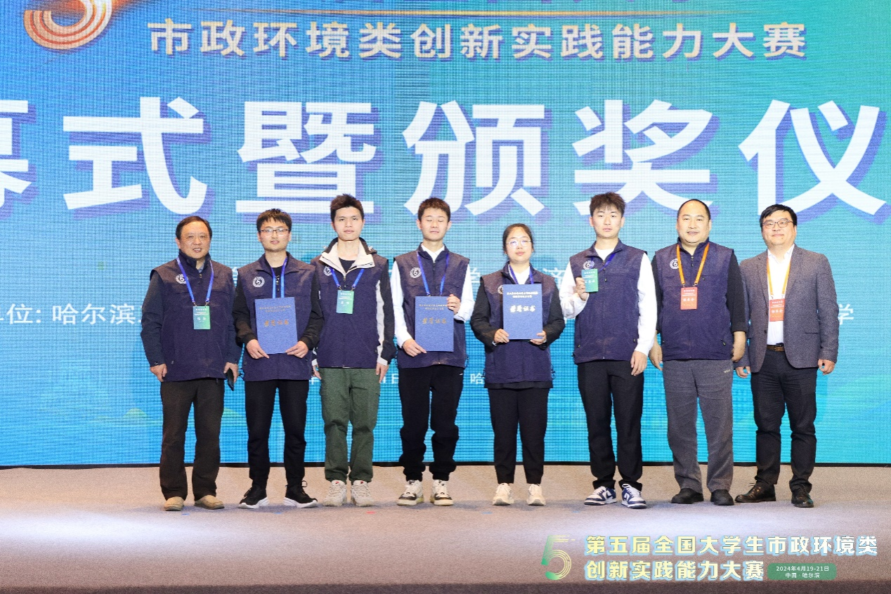 2024年4月19日至21日,由哈尔滨工业大学、同济大学共同主办的第五届全国大学生市政环境类创新实践能力大赛总决赛暨颁奖仪式在哈尔滨市黑龙江隆重举行。哈尔滨工业大学本科生院副院长徐平、哈尔滨工业大学环境学院院长梁恒、同济大学环境科学与工程学院副院长陆志波、北京师范大学环境学院副院长冯成洪、兰州大学资源环境学院副院长管清玉出席颁奖仪式并先后致辞。哈尔滨工业大学环境学院副院长南军主持颁奖仪式。经过激烈的角逐,由同济大学段力恩、刘洪旭、蔡峰组成的“混凝沉淀队”和王鑫源、袁铭、李娅娜组成的“云起时队”凭借出色的创新能力和实践能力,荣获了一等奖两项。此次获奖,既是对我校在该领域的研究实力的高度认可,也是对我院在创新实践方面人才培养模式的肯定。
