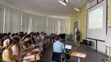 来到KIT的第二日上午,师生们聆听了三位博士的学术报告,讲座围绕太湖水质治理、湄公河三角洲环境挑战、卫星环境检测SAR技术等生态环境课题展开积极交流讨论。同学们在思维碰撞中拓展了国际环境问题的认知,认识到技术的进步在改善人类生态环境过程中的重要作用。