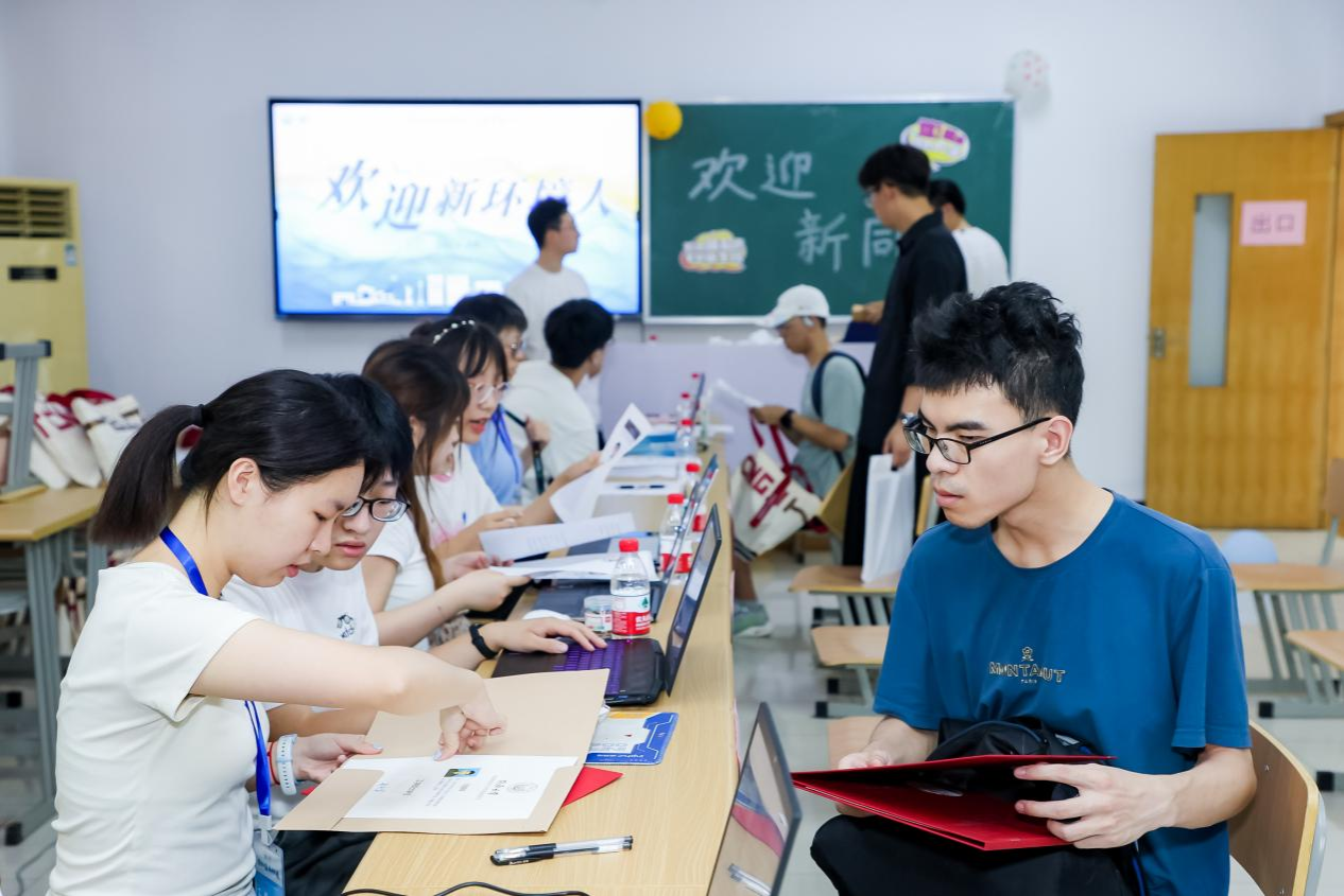 随着第一缕阳光洒落进明净楼,新生们步入了师生提前精心布置过的迎新大厅。志愿者和老师们早已就位各司其职,为新生报到保驾护航。在这里,他们不仅提交了承载着梦想与期望的录取通知书,还收获了学院精心准备的新生大礼包,内含精美的校徽及生活指南,每一份礼包都寄托着学院对新生的深切关怀与美好祝愿。同时,领取的入学安排表详细规划了接下来的日程,引领他们稳步迈向研究生生涯的起点。