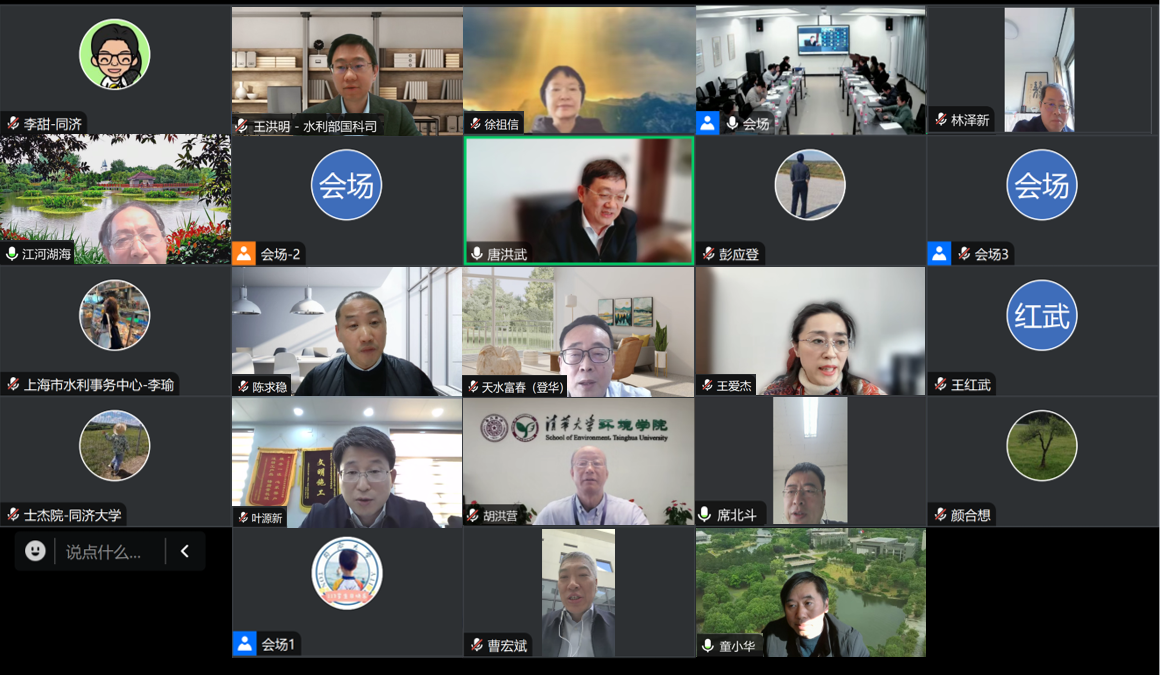 学术委员会名誉主任徐祖信院士,主任唐洪武院士,副主任胡洪营教授,委员王爱杰教授、叶源新教授级高工、严登华教授级高工、陈求稳研究员、林泽新教授级高工、徐贵泉教授级高工、席北斗研究员、曹宏斌研究员、彭应登研究员和徐斌教授等出席会议。同济大学童小华副校长、水利部国科司王洪明处长出席会议并致辞。同济大学科管部杨华副部长、环境科学与工程学院党政领导班子、实验室学术骨干,共建单位代表参加会议。会议由杨华副部长和唐洪武院士主持。