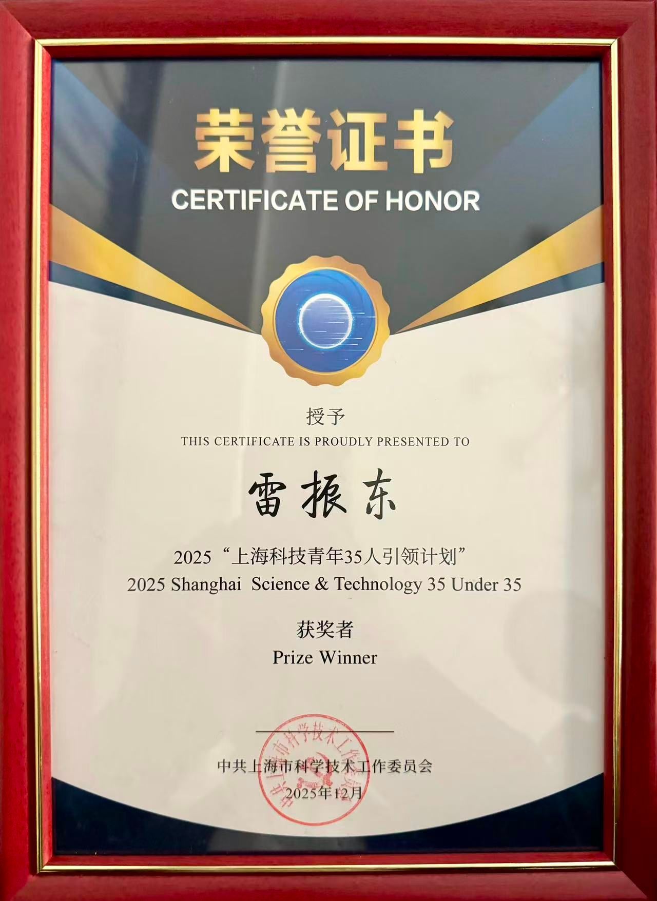 12月28日,第五届“上海科技青年35人引领计划”(简称“U35”)颁奖典礼在上海举行。我院雷振东教授凭借面向国家重大需求战略方向的突出成就,获评2025“上海科技青年35人引领计划”荣誉。