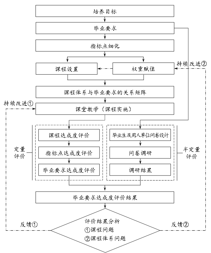 以《工程教育认证标准》为指导,根据各专业人才培养目标及各专业学生的毕业要求,对其毕业要求达成度进行评价,并将评价结果用于教学持续改进过程中。通过评价,可为各专业人才培养提供一种较为科学、合理的评价方法,对提升专业人才培养质量具有积极的引导和推动作用。
