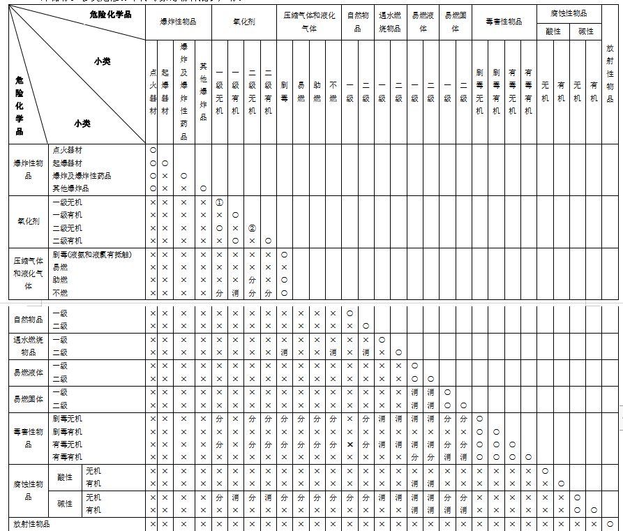 常用危险化学品储存禁忌物配存表