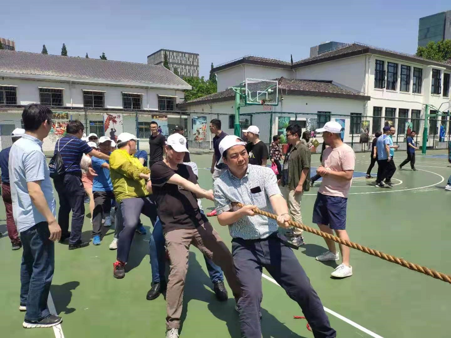 一根绳,一条道,拔出的是健康的体魄和独特的技术;一支队,一群人,体现的是环境教工的自信力量和团结精神。