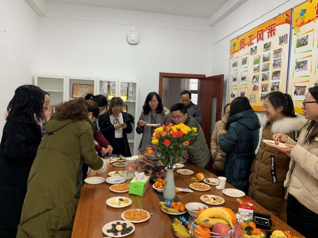 随后,教师们也带来了自己的拿手作品,带着各式各样的自制美食到明净楼317一起分享,大家兴致勃勃地交流各自对美食的热爱。美食活动让忙碌工作的教师们有了小憩的机会,在诱人的美食面前,大家闲适地坐下来,可以品品美食、闻闻茶香、可以畅谈人生、工作和家庭,也可以分享喜悦、分担忧愁。活动结束后,大家带着对下一次美食的期盼而意犹未尽。