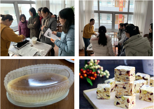 首先,教师们认真聆听美食指导老师陶然的讲解和演示,并动手按配方及要求,仔细操作,认真定型,最终,教师们都顺利做成了可口的雪花酥。见到自己优秀的成果,老师们惊叹不已,并表示将回家向家人展示手艺。