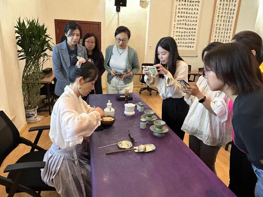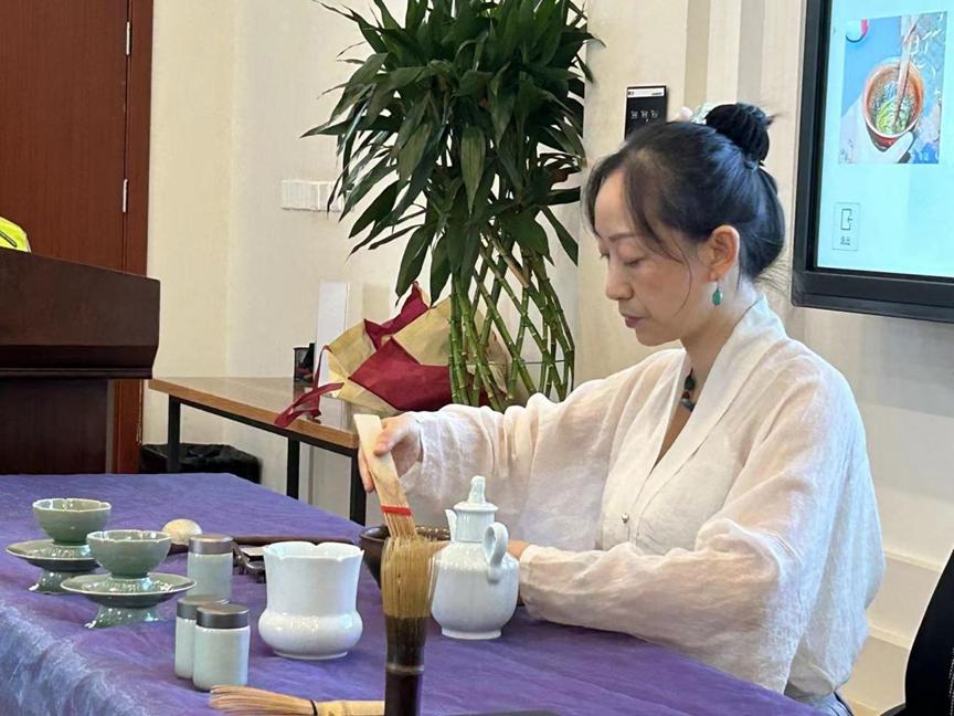 10月24日下午,环境科学与工程学院妇女之家特色项目——“宋代点茶,再现繁华”活动在明净楼四楼报告厅成功举行。此次活动邀请了北宋宫廷非遗点茶研习人、一级茶艺师冉玲老师为各位老师讲述宋代点茶文化,与老师们一同现场点茶。