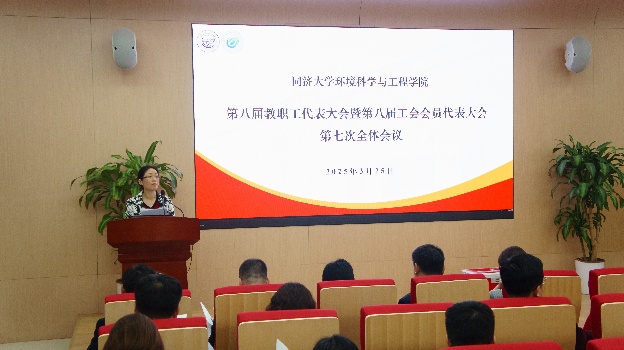 2025年3月25日,同济大学环境科学与工程学院第八届教职工代表大会第七次会议暨第八届工会会员代表大会第七次全体会议在明净楼121会议室隆重举行。学院党政领导班子成员、34名正式代表及6名特邀列席代表齐聚一堂,共商发展大计。会议由院工会副主席唐贤春主持。