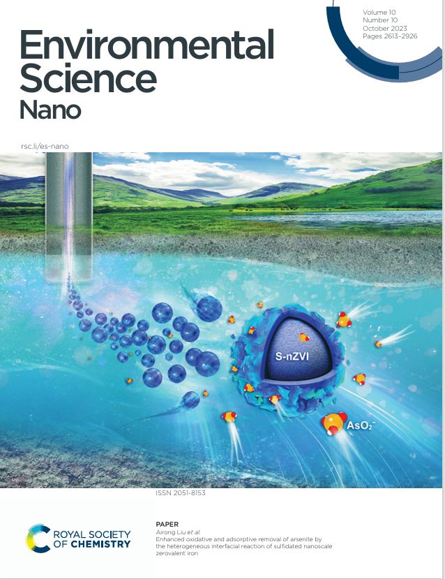 Liu J., Yang S.M., Liu A.R.*, Huang Q., Zhang W.-X., Wang S.Z. and Xiao Q.F., Enhanced oxidative and adsorptive removal of arsenite by the heterogeneous interfacial reaction of sulfidated nanoscale zerovalent iron. Environental Science: Nano.2023, 10,2646.(前封面)